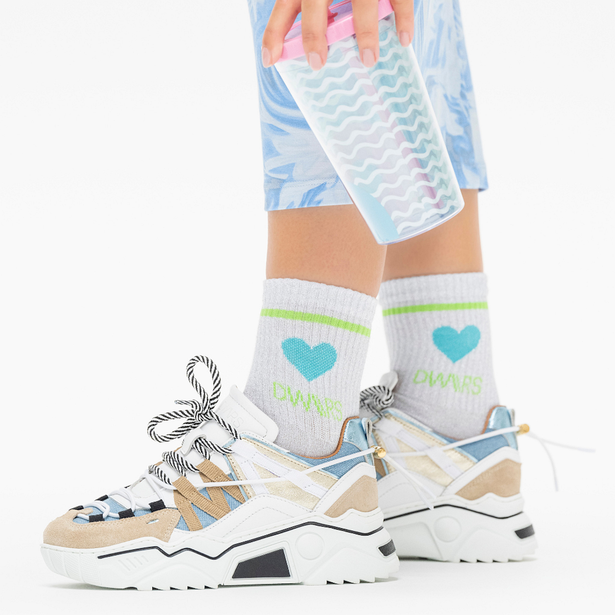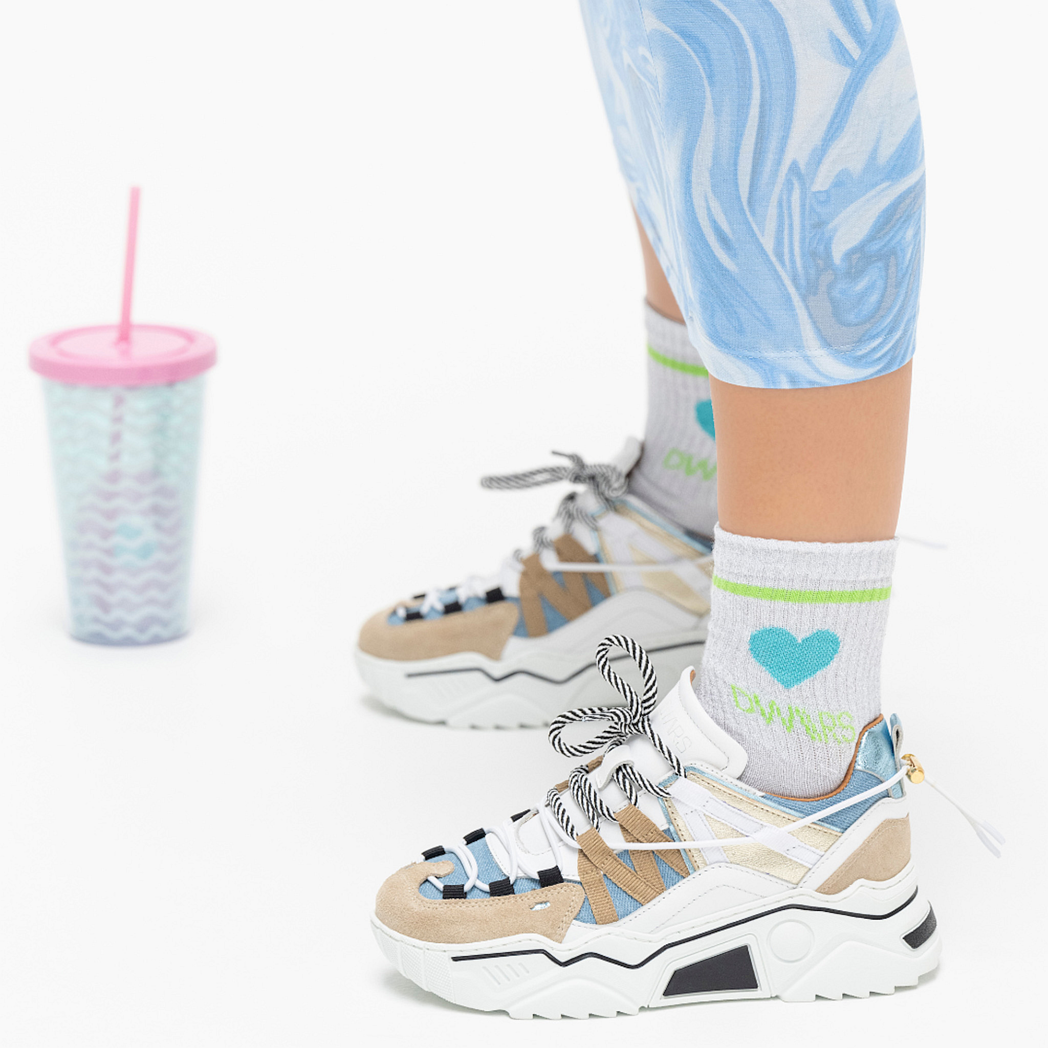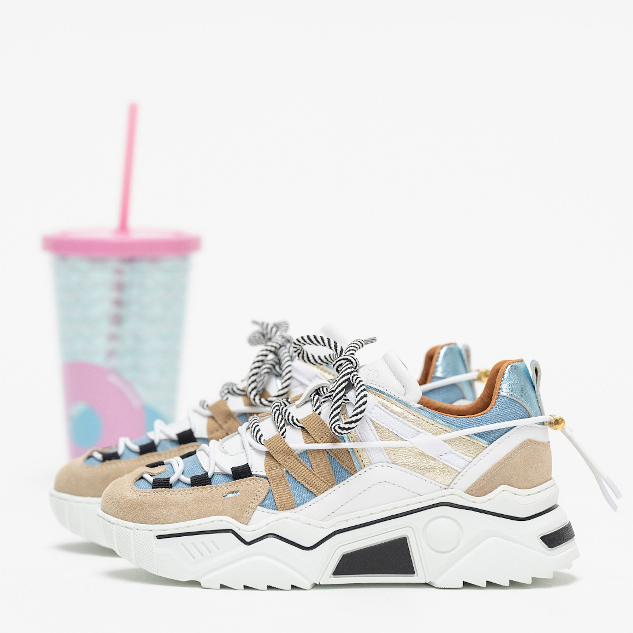 Met de Orion Denim Sand sneakers van DWRS Label voeg je moeiteloos een vleugje glamour toe aan je dagelijkse look. Deze stijlvolle dames sneakers combineren een eigentijds design met hoogwaardige materialen, ideaal voor elke gelegenheid. Ontdek waarom deze sneakers niet mogen ontbreken in je garderobe.