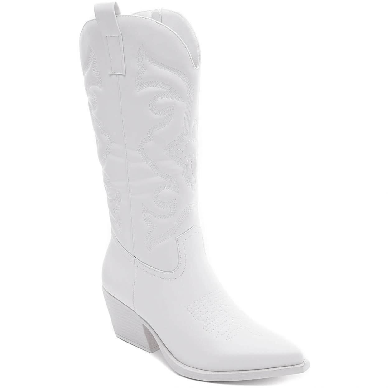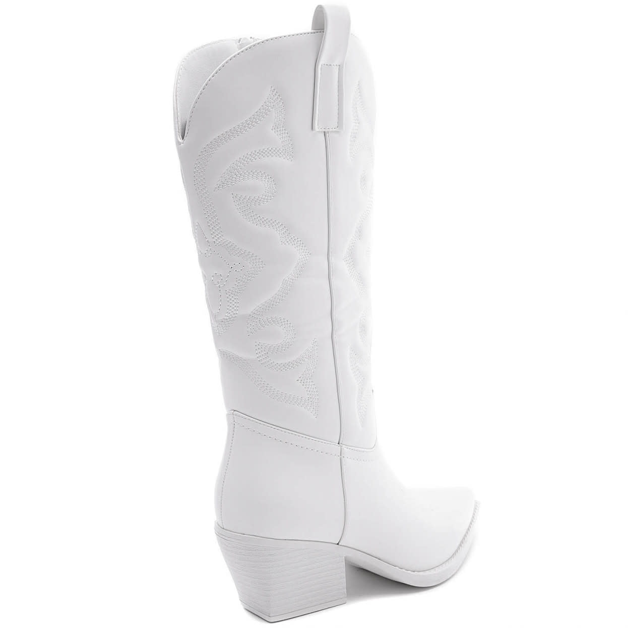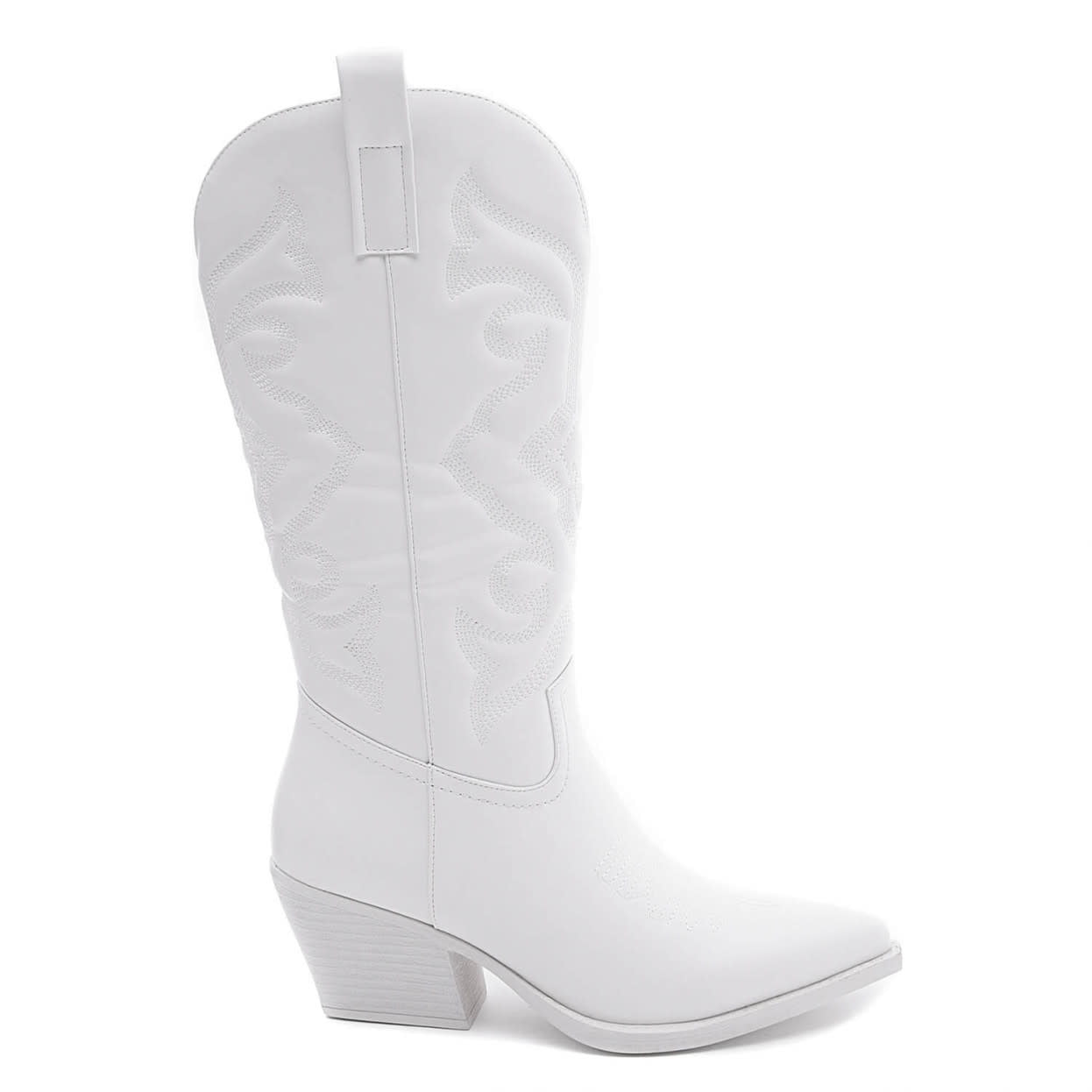 Musthave Wutte cowboylaarzen voor dames. Laarzen afgewerkt met stiksels en witte zool. Verkrijgbaar in maat 36 t/m 41. Deze trendy westernlaarzen maken je outfit helemaal af.