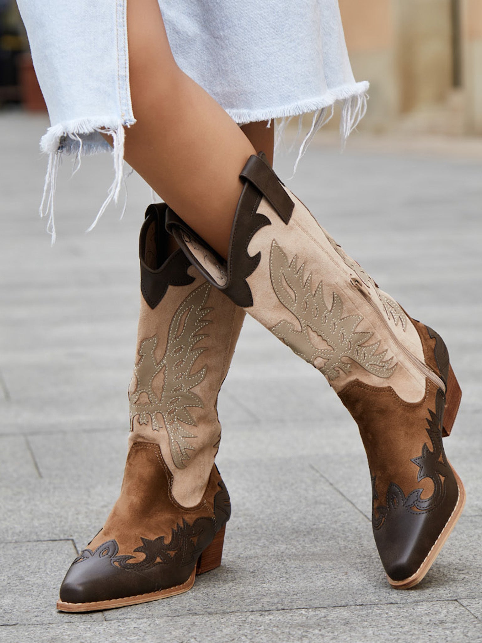 Niet alleen stijlvol, maar ook praktisch. Deze hoge cowboylaarzen zijn voorzien van een ritssluiting aan de binnenzijde, zodat je ze makkelijk aantrekt. De stevige hak geeft je net dat beetje extra lengte zonder in te leveren op draagcomfort. Of je nu een hele dag onderweg bent of een avondje uit plant: jouw voeten blijven blij.