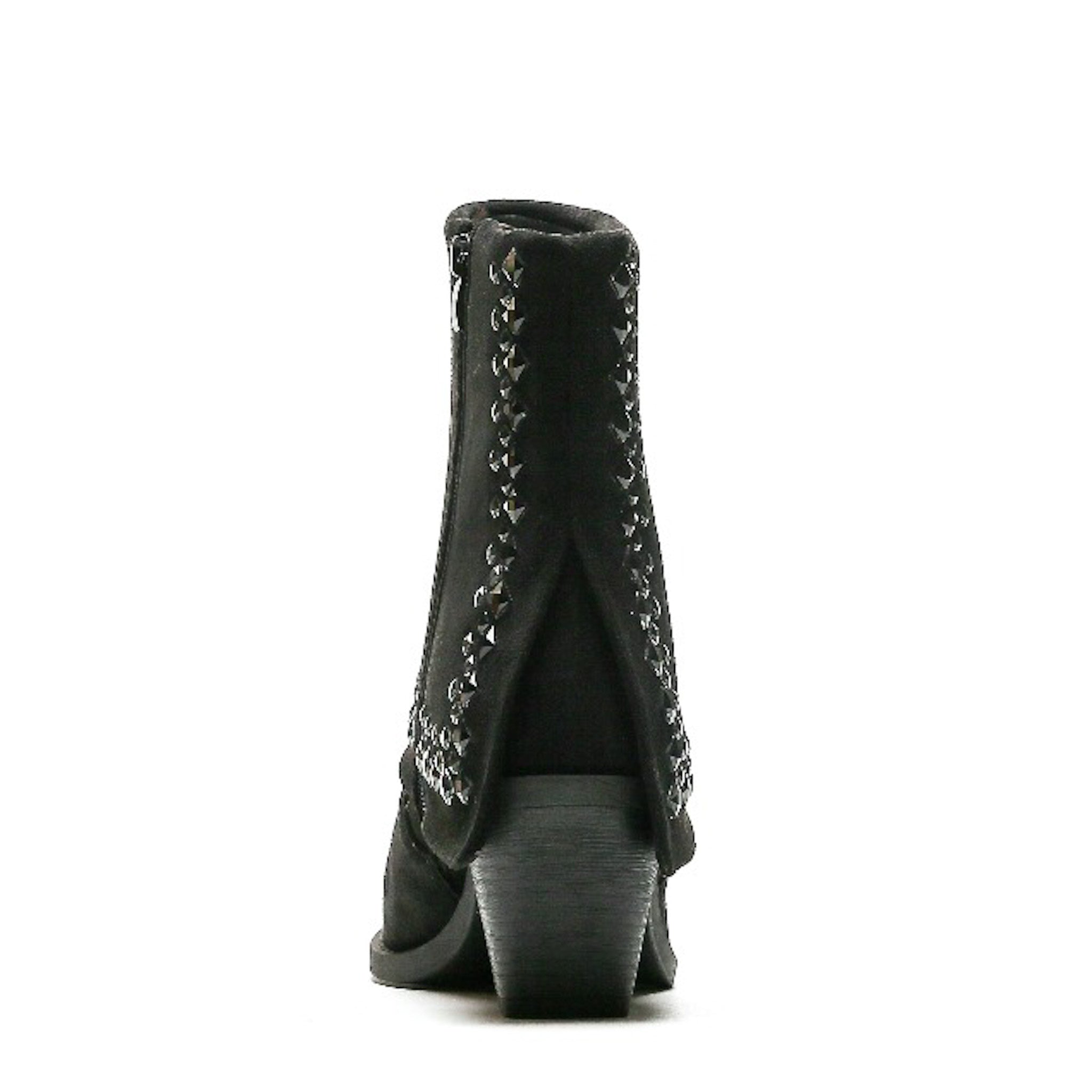 Maak een gedurfd fashion-statement met deze zwarte cowboylaarzen met flap en studs en voeg een vleugje western rock aan je outfit toe!