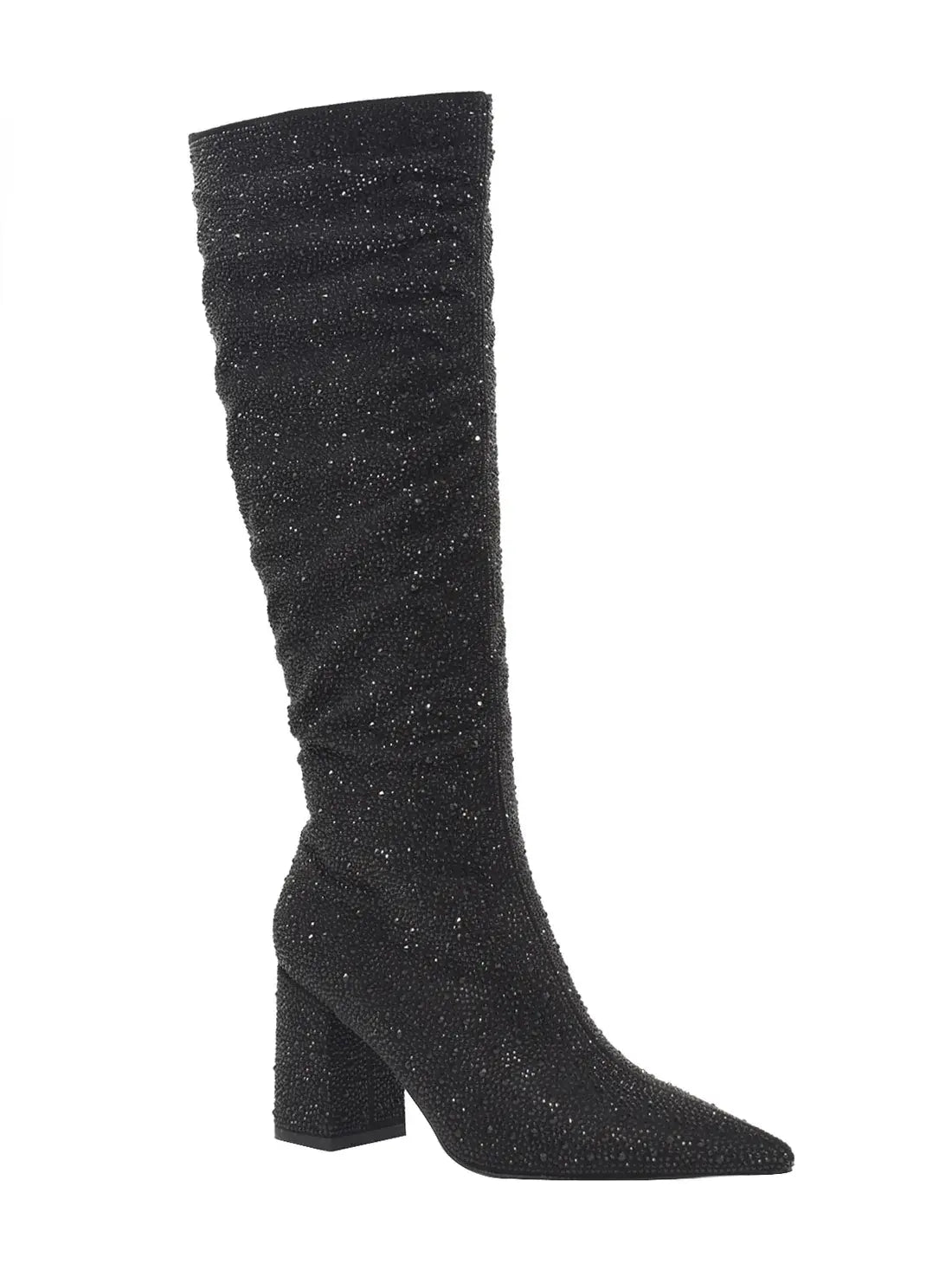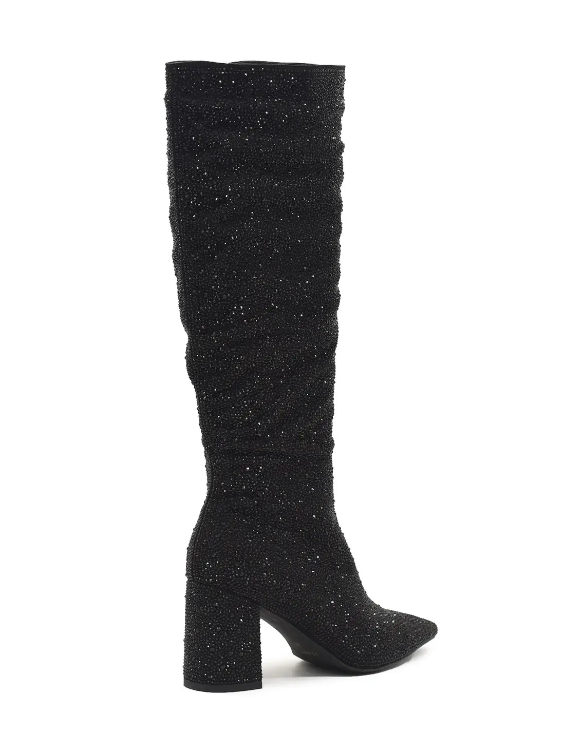Zwarte suedine hoge laarzen voor dames. De laarzen zijn volledig met zwart strass bedekt en hebben een rits aan de binnenzijde. Verkrijgbaar in maat 36 t/m 41. Een echte musthave voor de feestdagen!