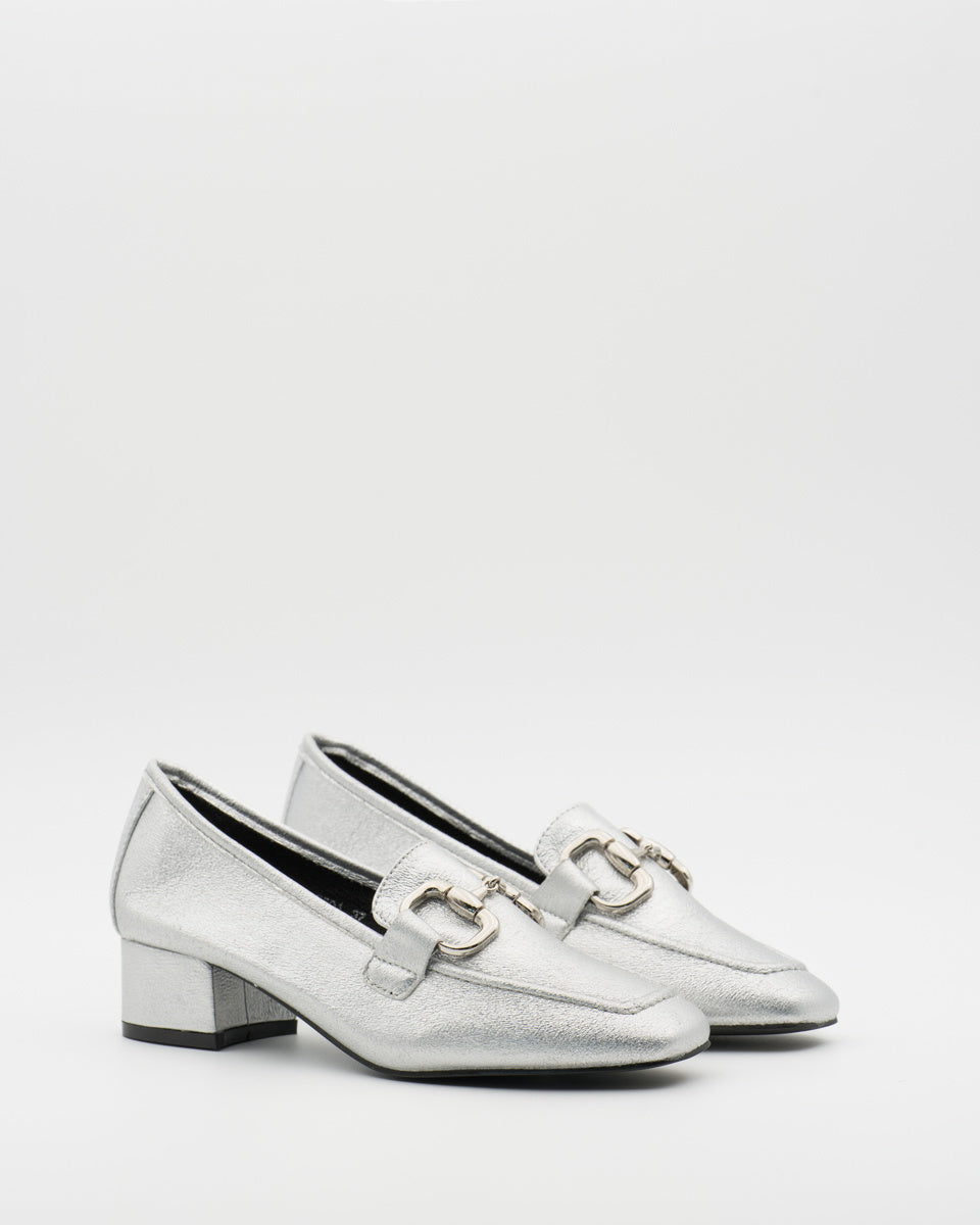Wat deze metallic instappers uniek maakt, is de combinatie van een klassieke loaferstijl met een subtiele blokhak. De hak voegt een verfijnd accent toe én zorgt voor een elegante houding. De decoratieve gesp op de wreef benadrukt het stijlvolle karakter van deze zilveren metallic mocassins en maakt ze geschikt voor zowel casual als meer geklede gelegenheden. Combineer ze met een pantalon voor een zakelijke look, of draag ze onder een jeans voor een moderne city-chic uitstraling.