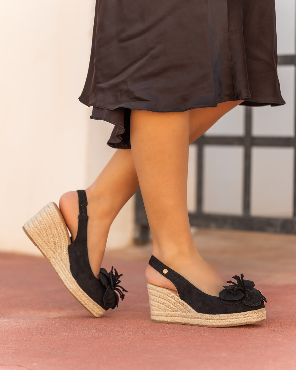 Sleehak Sandalen Zwart Suedine Bloem