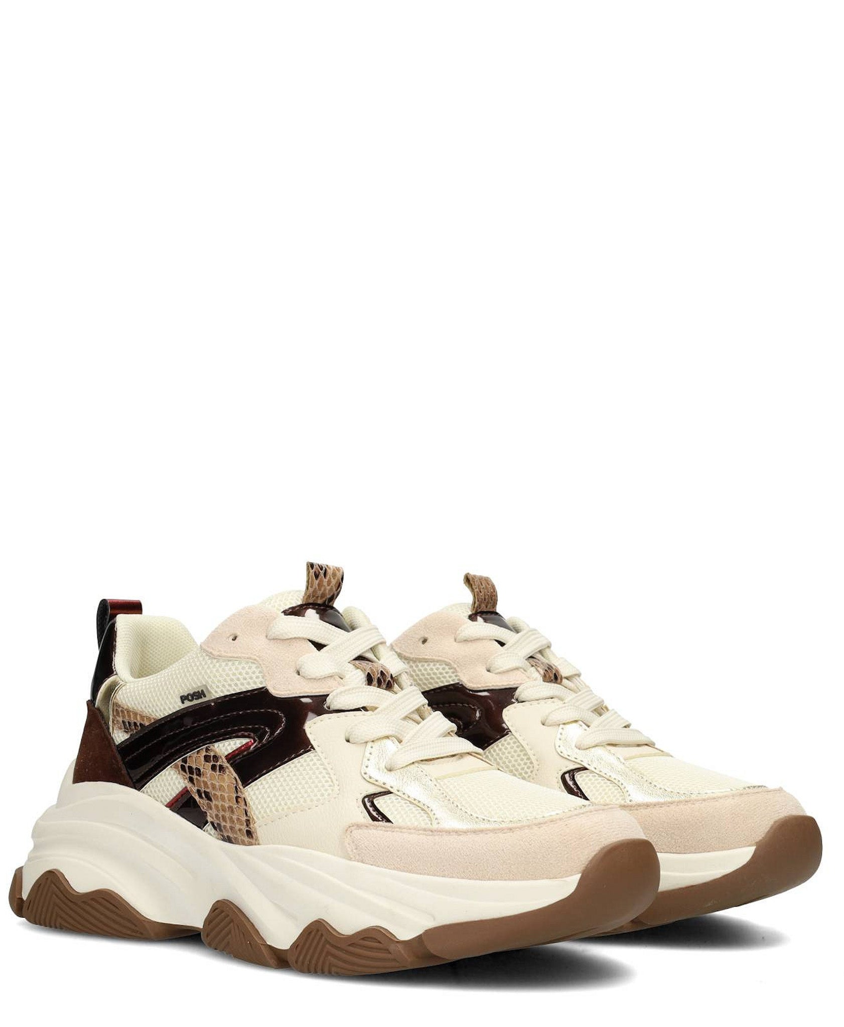 De Poelman Gigi sneakers zijn onderdeel van de POSH-lijn, waar mode en comfort samenkomen in een elegante uitvoering. Het bovenwerk is gemaakt van hoogwaardig beige synthetisch materiaal met subtiele bruine accenten, stikdetails en een sportieve belijning. De chunky zool zorgt niet alleen voor een stoere uitstraling, maar biedt ook extra lengte zonder in te boeten op comfort.