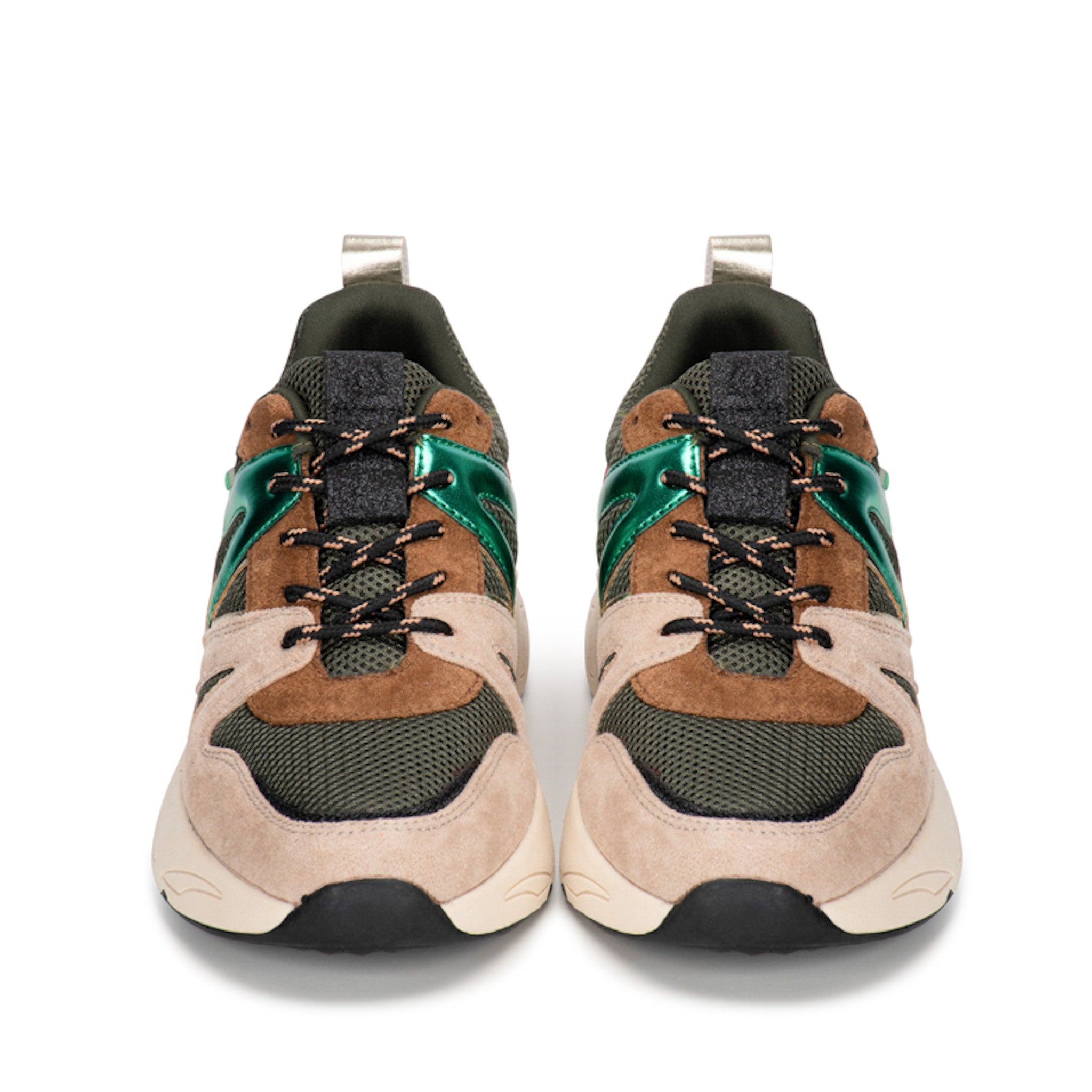 Deze "CAROCEL" sneakers voor dames van POSH by Poelman zijn van imitatie suède, mesh en metallic in de kleuren groen, bordeaux rood en bruin. Mooie warme tinten, perfect te combineren voor het najaar! Het model is voorzien van een vetersluiting en heeft een hakhoogte van 4 centimeter. De sneakers hebben een voering van textiel en een uitneembaar voetbed. De sneakers zijn een echte eye-catcher!