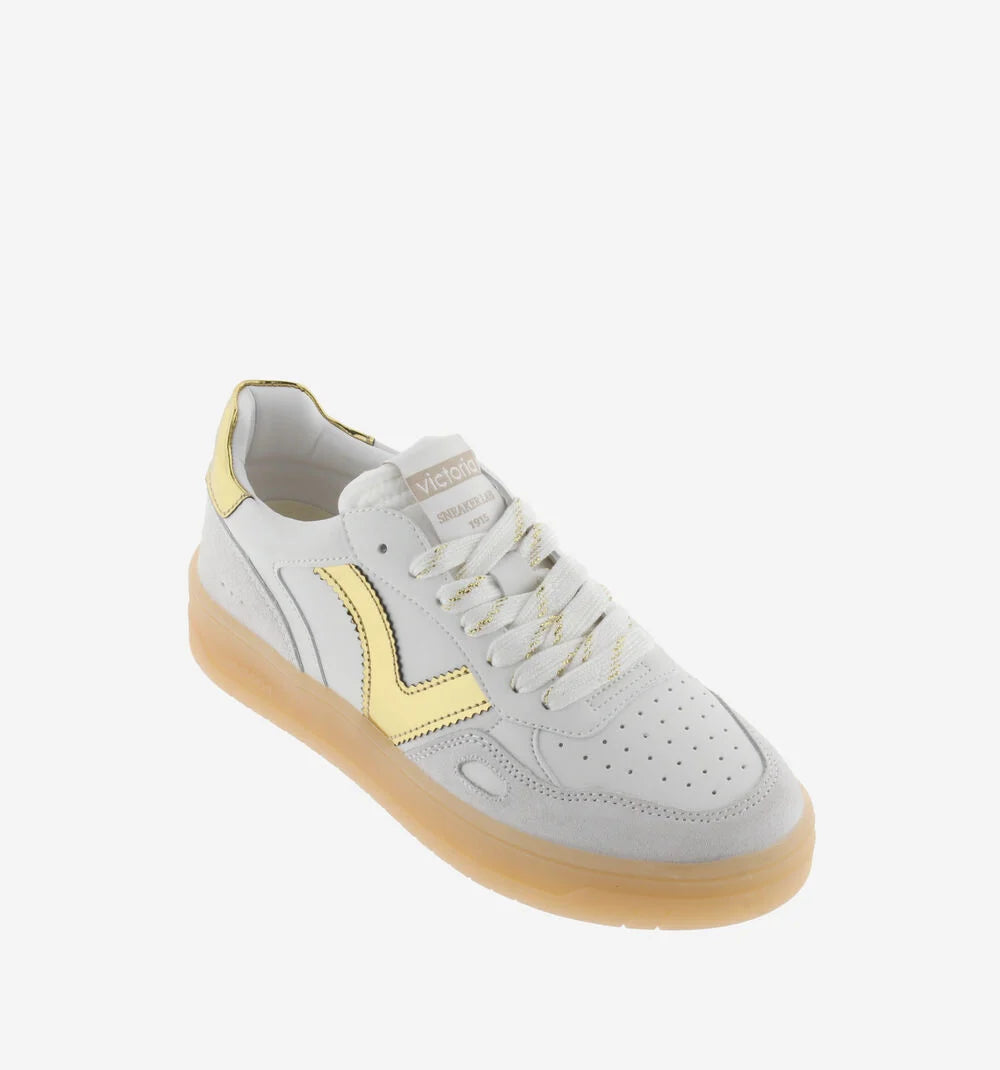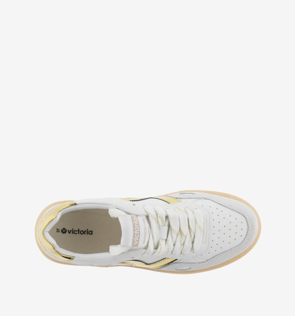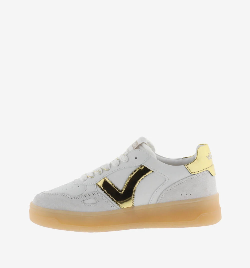 De glanzende gouden hielcap en het minimalistische Victoria-logo geven deze sneakers met goud een luxe uitstraling zonder overdadig te zijn. Precies wat je zoekt als je waarde hecht aan subtiele klasse.